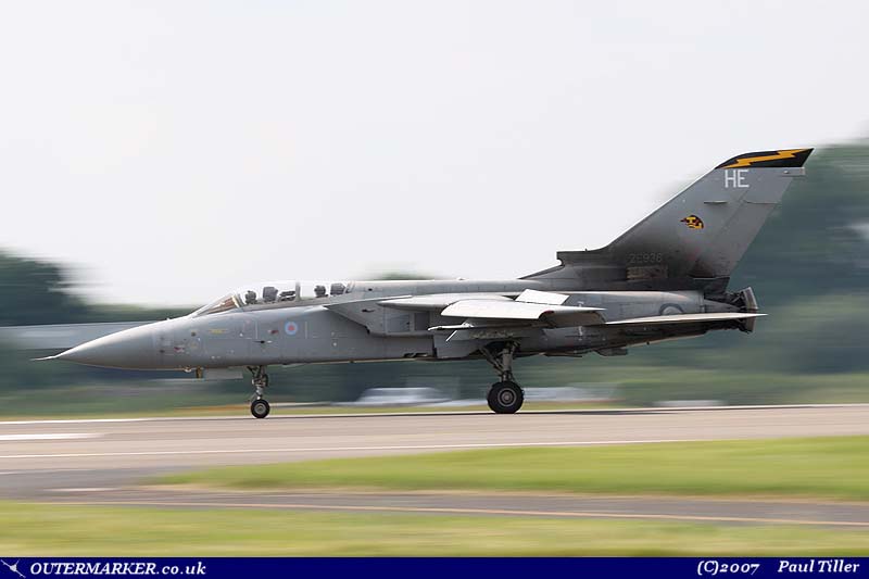 The highlight of the show was the RAF's role demo. The participants each taking centre stage during the unfolding of the scenario, starting off with the departure of two Tornado F.3s (one 43(F) Squadron, one 111(F) Squadron), to the arrival of the 8/23 Squadron E-3D Sentry. The demo culminated in an aerial assault by two XIII Squadron Tornado GR.4's complete with convincing pyrotechnics. Whilst the Tornado F.3s provided top cover for the GR.4s, Hawk T.1s acted as enemy air defence. In the meantime, a Chinook inserted ground troops and a C-130J provided reinforcements in a tactical take off and landing. The finale consisted of a flypast of all types in the same airspace. |