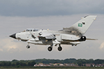 The four deployed Tornados had all been through the £2.5 billion “Tornado Sustainment Programme” (TSP) which means most of the Saudi IDS fleet is now roughly equivalent to the RAF’s GR4s in terms of avionics fit and are capable of employing the latest targeting and precision guided munitions systems such as Brimstone and even Storm Shadow. The Saudi jets are, however, a little different in that the Saudi’s are more cosmopolitan in terms of where they source their defence products and, historically, they come from all over the place. For instance, whilst the RAF employs Northrop/Rafael LITENING III RD targeting pods, the Saudis use the Thales Damocles pod and where a GR4 could be fitted with MBDA AIM-132 ASRAAMs for self-defence, a RSAF IDS could wield the Diehl AIM-2000 IRIS-T instead. One other difference was also quite easily picked up by the crowds of people and was much more obvious – the RSAF IDSs were just plain noisier than their GR4 cousins. |