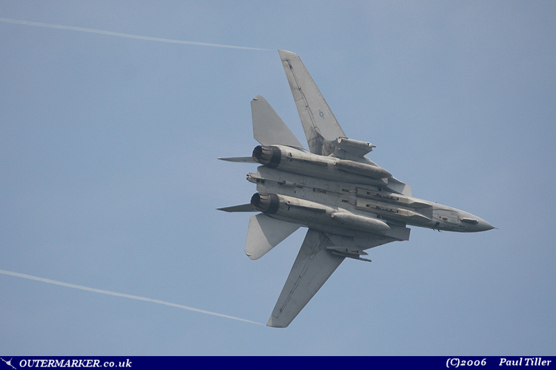 Considering its status as the east coast’s sole Master Jet Base and home to all the USNs East Coast fighter and strike-fighter squadrons under COMNAVAIRLANT, it was fitting for the last ever USN F-14 tacdemo to be performed in the skies of Virginia. It is not an assumption too far if you were to assume that enthusiasts flocked to NAS Oceana for just the Tomcat – especially a flying one. It was noticed that enthusiasts had come from the UK, Japan, Poland, Australia and Brazil – to name just a few. I’m sure that if there had been passport control on the gates, “us foreigners” would have made up quite a high percentage of the 260,000 stong crowd. During the build-up to the show, rumours throughout the year varied from “diamond six” formations to not seeing any Tomcats at all and back again… blood pressures were going up and down and deep breaths were taken. When CDR Richard Erie and his airshow team confirmed the F-14 in the show, sighs of relief would have been heard the world over. |