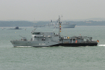 Dropping anchor off Spithead on the weekend before the celebrations began, the de Gaulle had a reduced air wing embarked – four F1-standard Rafale Ms of 12F from Landivisiau, six Super Etendard Ms of 11F also from Landivisiau and two E-2C Hawkeyes of 4F from Lorient plus a single Dauphin and Alouette III helicopter. All of which were hangared below-deck for their arrival and were brought topside a little later bringing some degree of life to the four acre flightdeck. The remainder of her air wing, about 26 aircraft, had left for their home bases prior to the arrival in the Solent. Wherever a carrier goes, a strike group goes with it and these strike groups invariably contain at least one hunter-killer submarine as arguably the best way of finding a submarine is with another submarine that doesn’t necessarily have to sail in relatively close proximity to the carrier like the destroyers and cruisers do. The de Gaulle was no different – accompanying her in the Solent were two surface combatants in the shape of the destroyer FS Tourville and the AS.565MA Panther-equipped air-defence frigate FS Jean Bart in addition to the FS Meuse replenishment ship plus the S606 FS Perle, the sixth and last boat of the Rubis-class hunter-killers. Obviously the strike group wasn’t “combat ready” in terms of being able to mount and sustain combat operations but no-one in their right mind would let more than three billion Euros worth of warship roam the oceans with no support or backup. Allowing a submarine to do its job, all alone, is one thing, letting something as obvious and visible as a carrier do the same think is tantamount to sheer craziness. |