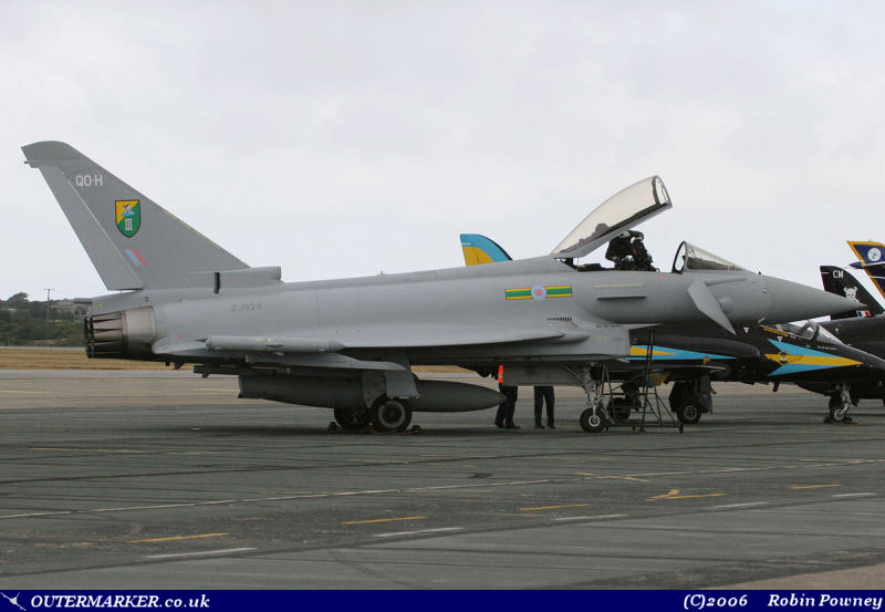 First to arrive was a jet I was pretty chuffed to be able to photograph after just plain bad luck at RAF Coningsby, the fact that one was tucked out of the way at the Waddington airshow and on static at RIAT – a 3(F) Squadron Block 2B Typhoon F.2. Until joined by XI(F) Squadron, 3(F) are the only front-line operational Typhoon squadron in the RAF (literally living up to their motto of Tertius primus erit; or, in English, the third shall be the first) and join the Luftwaffe’s JG73 Steinhoff at Laage and JG74 Mölders at Neuberg, the AMI’s 4º Stormo at Grosseto and the EdA’s Ala 11 at Moron in having ‘proper’ operational Typhoons. With perhaps the smartest looking markings of any of the three RAF Typhoon squadrons, the codes worn now hark back to the historic World War II days of the Hurricane IIs and Typhoon IBs. |