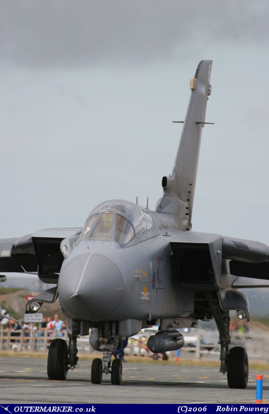 You may have guessed by now that the photocall participants were arriving throughout the course of the day – well, they depart too and had there been a competition for best departure, the crew in the SAOEU GR.4 would have taken the award by some margin. It was nothing that special at first as they cleaned up and banked away from the photographers and just seemed to disappear into the cloud over the Irish Sea – as you would have expected them to. Disappear is not an entirely accurate term though as shortly afterwards, with wings swept back right to their 67º limit, the Tornado came steaming in at what was probably less than 150ft with the speedometer nudging what must have been 500 to 600kts. Banking round the tower, the turn was maintained right over our heads – it came as that much of a surprise that I don’t know of anyone that managed to get a shot! Unfortunately this didn’t set a precedent as everything following seemed to make fairly standard departures. It is one experience of the Tonka I won’t forget in a hurry and I can completely understand why, in Iraq and Afghanistan, the simple act of a low-level, high-speed pass can help out the guys and girls on the ground. If only one word could be used to describe it then, well, I’m stuck – it really was that good and something that remained the subject of many a conversation. Basically, we had front row seats for watching a Tornado do what they do best... magic! |