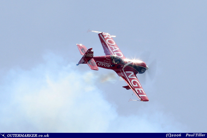 The Royal Navy and the Army Air Corps were both represented in the flying display with their respective display teams the Black Cats and the Blue Eagles. The Black Cats putting their Lynx helicopters through a spirited display of aerial ballet whilst the Blue Eagles display for 2006 incorporated some new manoeuvres one of which was “helicopter dogfighting” - interesting! The Austrian Air Force took the honours for providing the sole European jet display with their Saab 105OE; an aircraft which produced a worthy display and noise to go with it. In between the military displays there were an number of civilian acts and display teams, these being the Red Bull Matadors with their Sukhoi Su-26M2 aircraft, the Aerostars with their six Yakolev Yak-50 aircraft, Will Curtis and the Road Angel Aerobatics display with his Su-26, John Taylor with his Extra 330L, FR Aviation’s display with two Falcon 20 aircraft, the Utterly Butterly team and The Blades of 2excel aviation. |